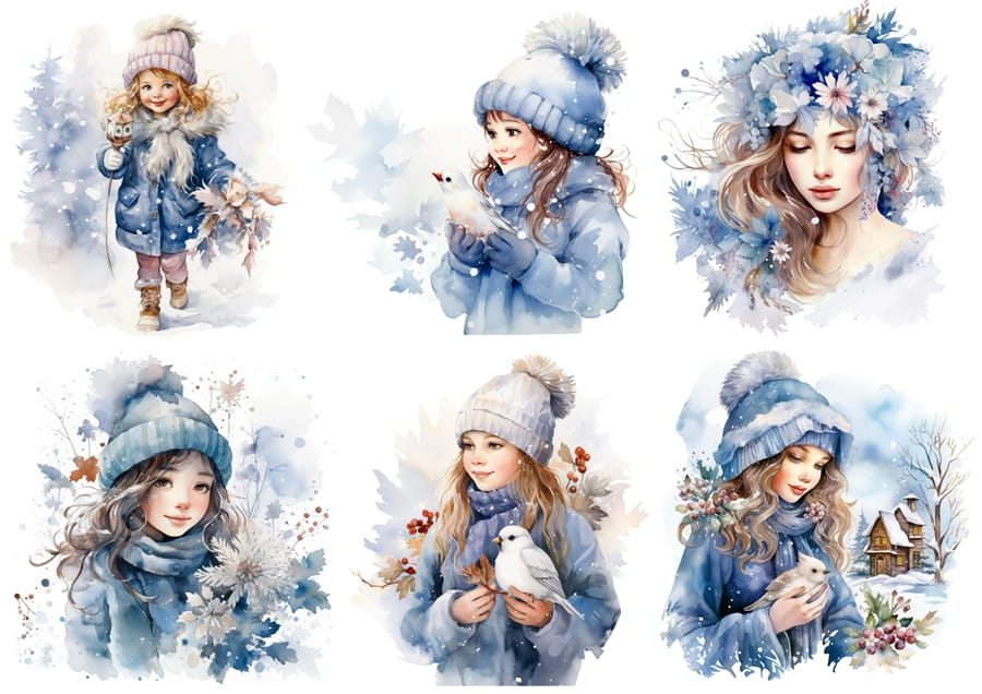 Papier ryżowy A4 do decoupage Artando - Dzieci, zima, ptaki