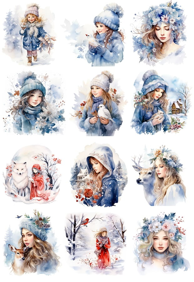 Papier ryżowy A4 do decoupage Artando - Dzieci, zima, zwierzęta