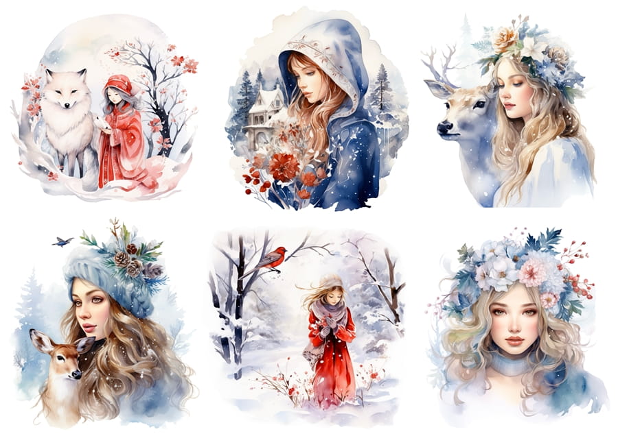 Papier ryżowy A4 do decoupage Artando - Dzieci, zwierzęta, dziewczyna, zima