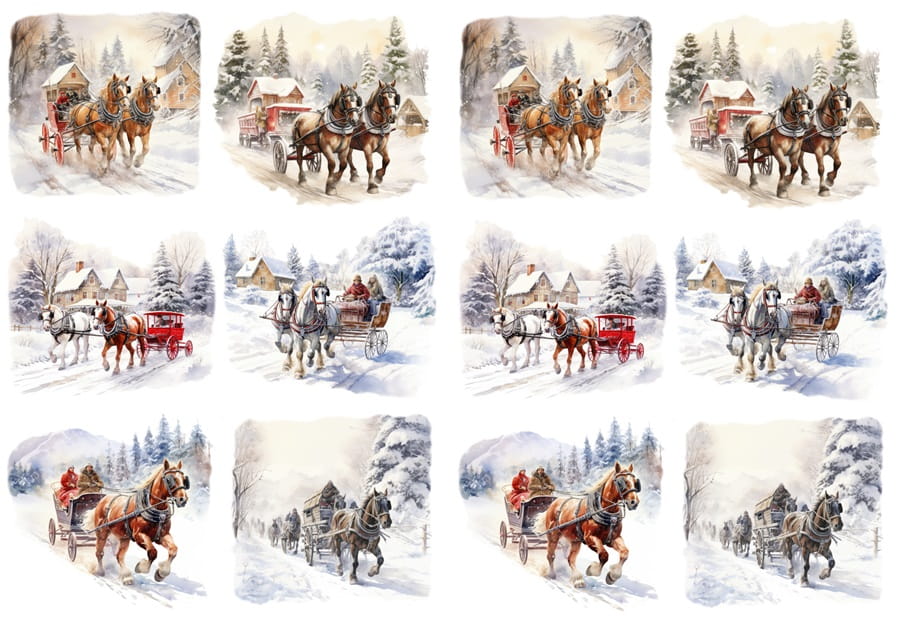 Papier ryżowy A4 do decoupage Artando - Konie, zaprzęg, zima