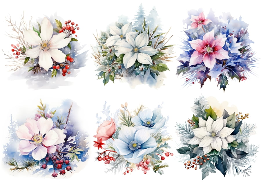 Papier ryżowy A4 do decoupage Artando - Kwiaty, poinsecja, zima)