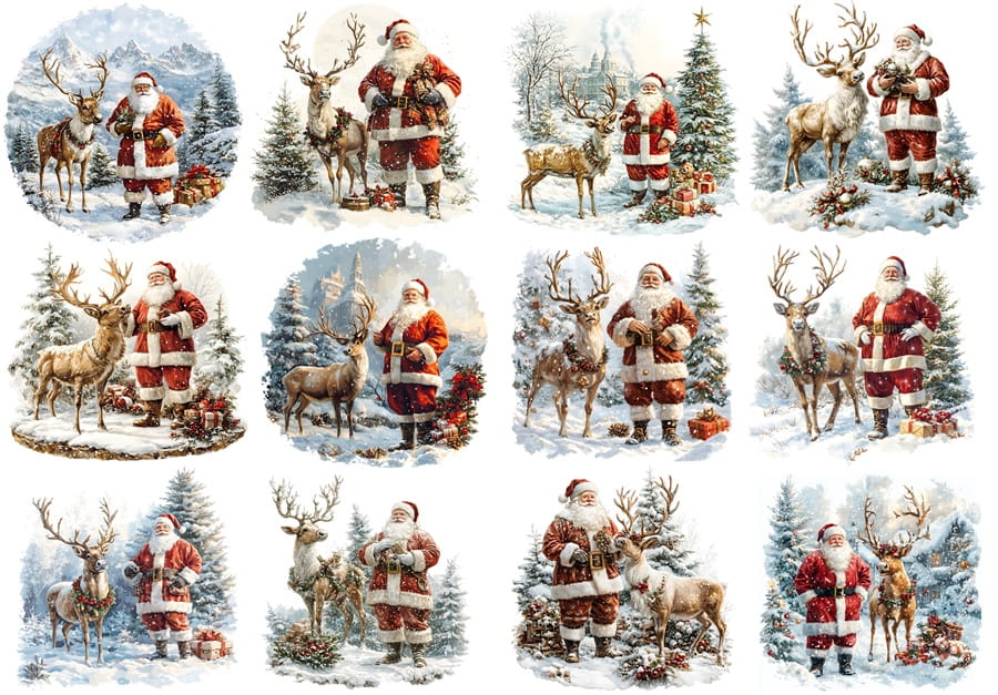 Papier ryżowy A4 do decoupage Artando - Mikołaj, renifer, zima