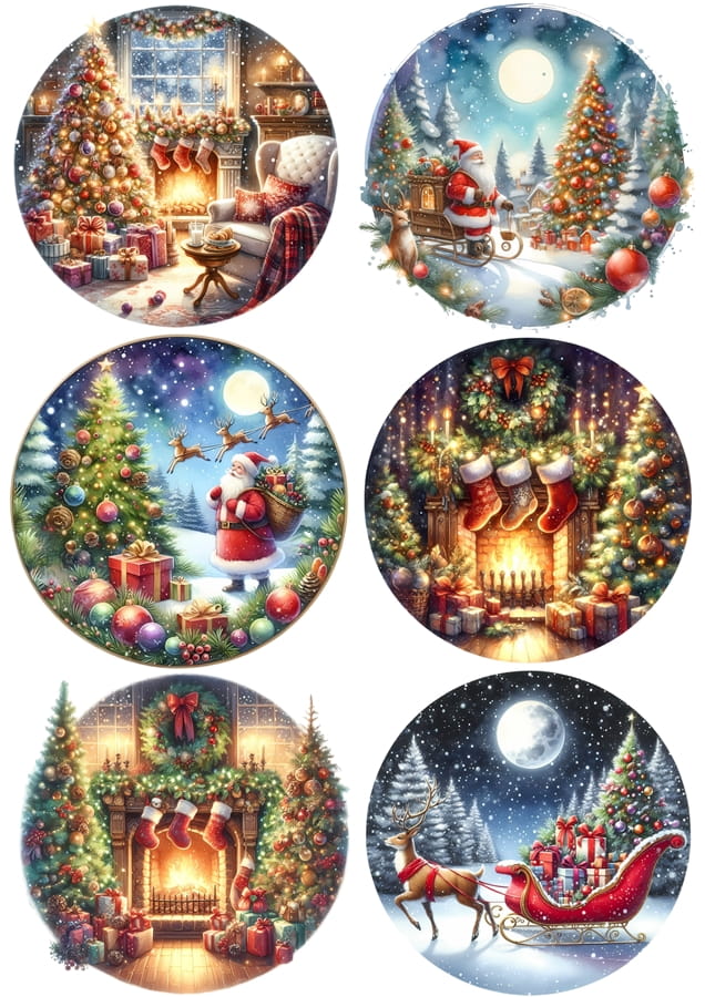 Papier ryżowy A4 do decoupage Artando - Mikołaje, choinki, zima, święta