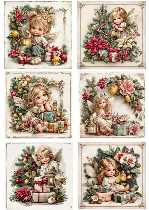 Papier ryżowy A4 do decoupage Artando - anioły, aniołki, choinka, kwiaty, stroiki
