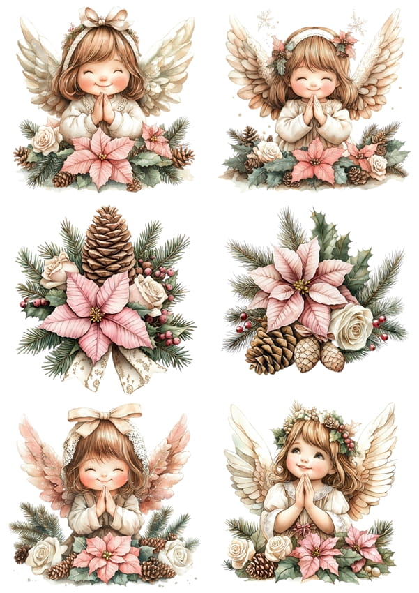 Papier ryżowy A4 do decoupage Artando - anioły, aniołki, stroiki, kwiaty, szyszki