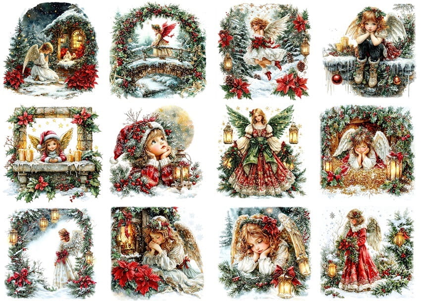 Papier ryżowy A4 do decoupage Artando - anioły, aniołki, święta, zima