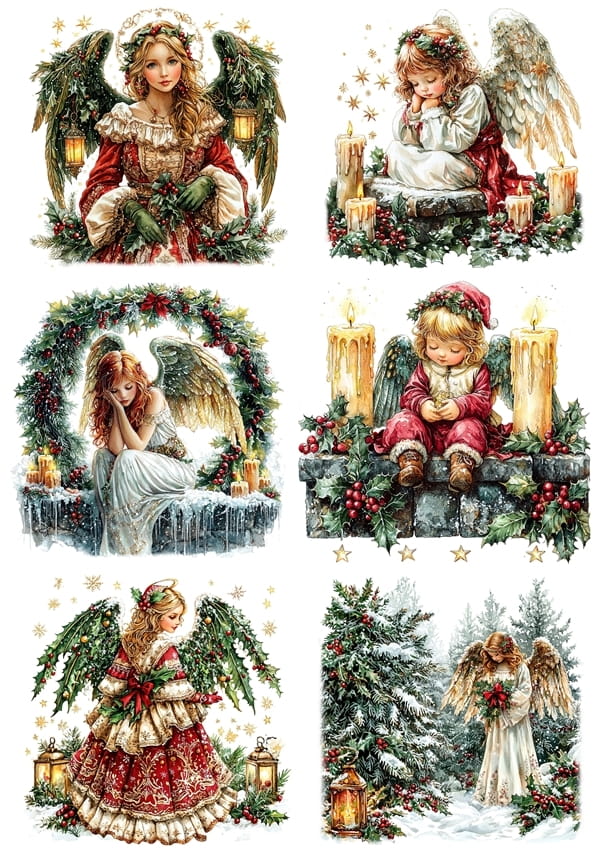 Papier ryżowy A4 do decoupage Artando - anioły, aniołki, święta, zima