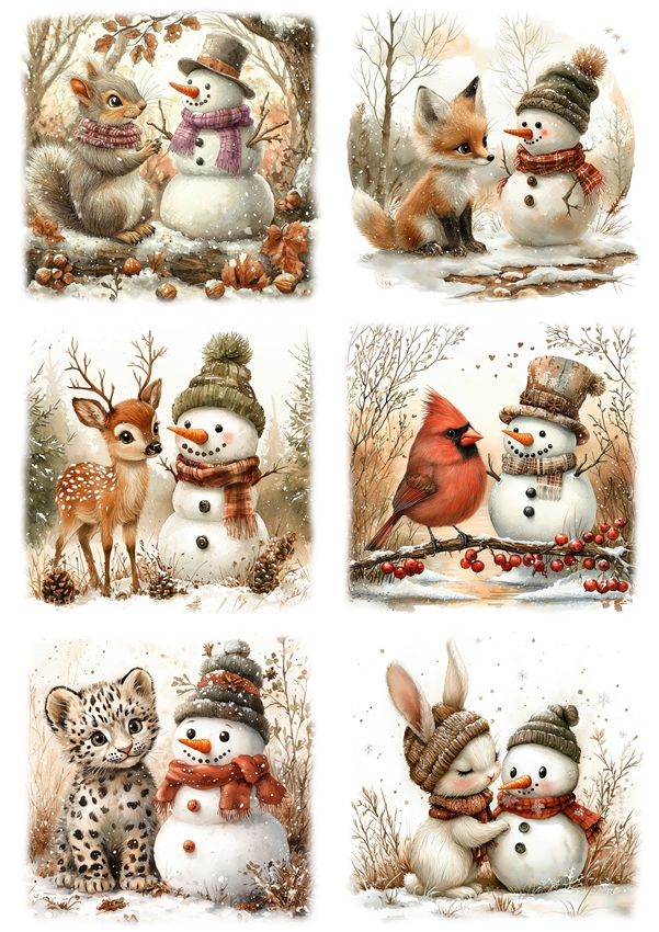Papier ryżowy A4 do decoupage Artando - bałwany, bałwanki, zwierzęta, ptaki, zima