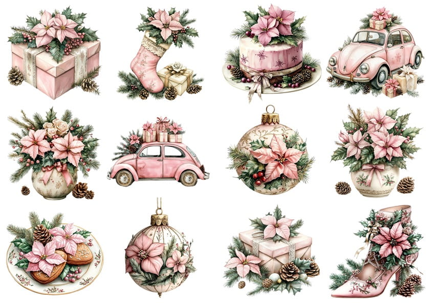 Papier ryżowy A4 do decoupage Artando - bombki, ozdoby, kwiaty, stroiki, święta