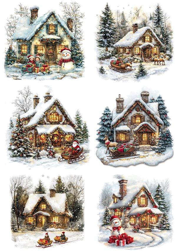 Papier ryżowy A4 do decoupage Artando - domki, chatki, zima