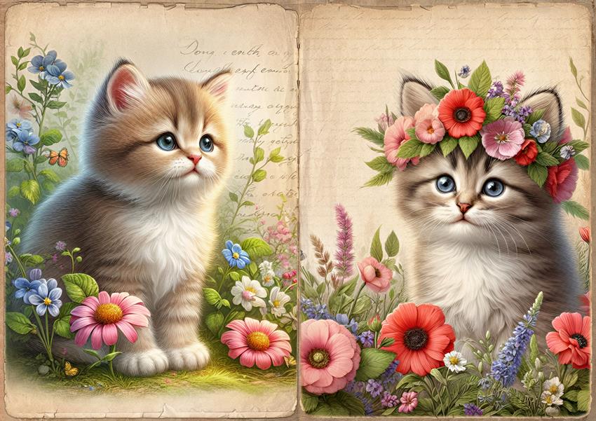 Papier ryżowy A4 do decoupage Artando - koty, kotki, kwiaty, napisy