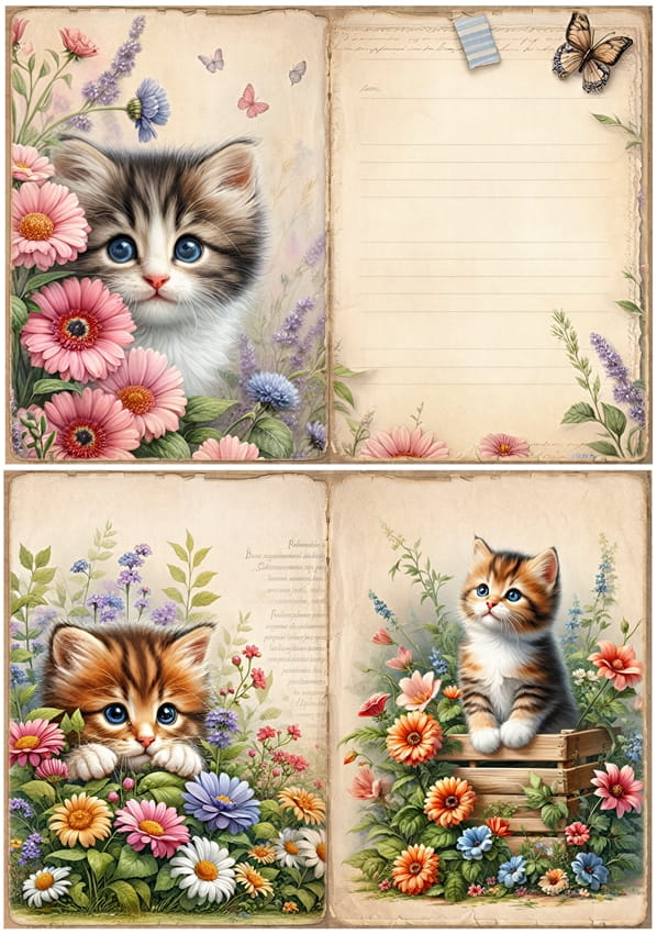 Papier ryżowy A4 do decoupage Artando - koty, kotki, kwiaty, napisy