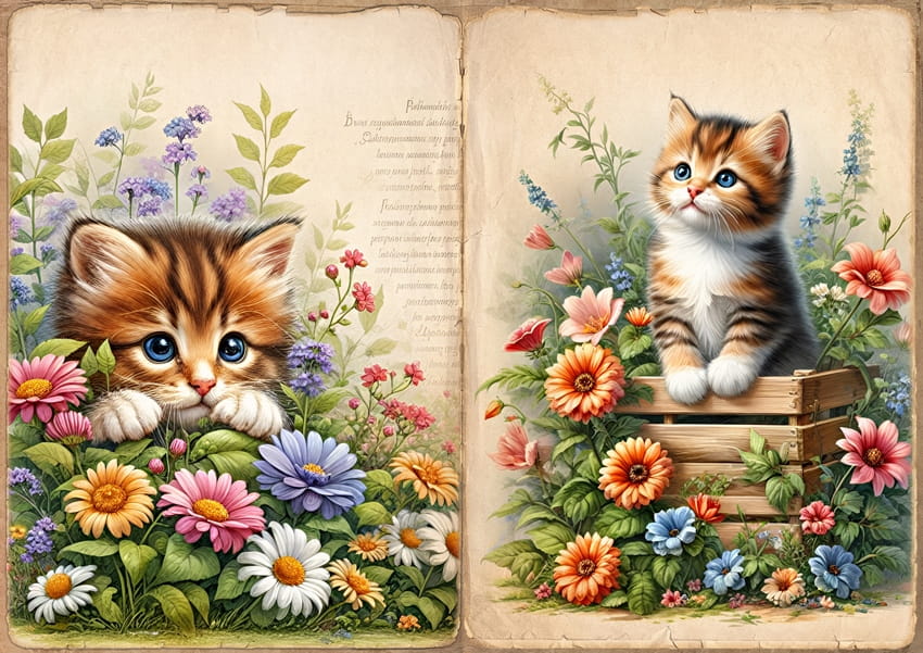 - koty, kotki, kotek, kocięta, kwiaty, kwiatki, napisy