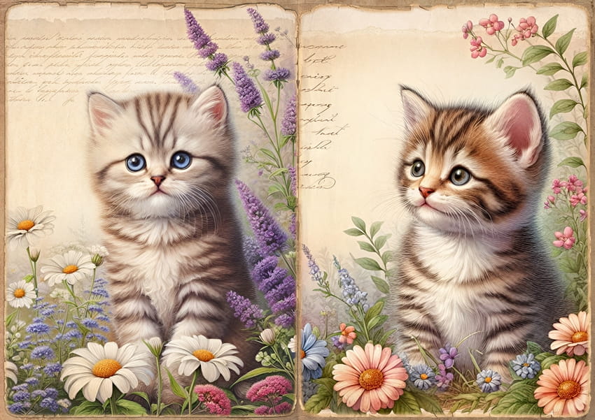 - koty, kotki, kotek, kocięta, kwiaty, kwiatki, napisy