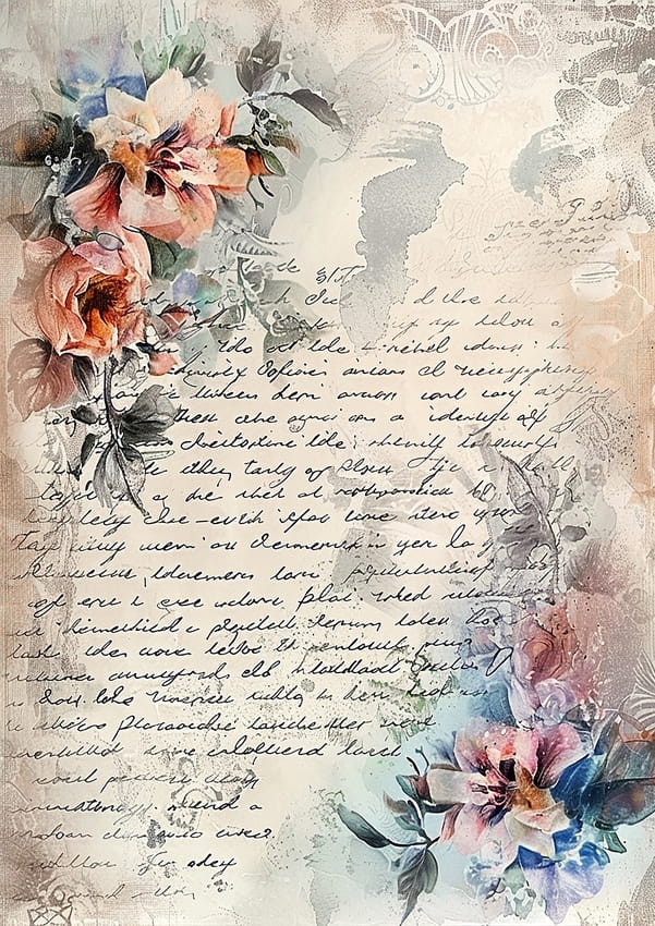 Papier ryżowy A4 do decoupage Artando - kwiaty, Vintage, napisy