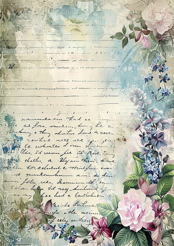 Papier ryżowy A4 do decoupage Artando - kwiaty, Vintage, napisy