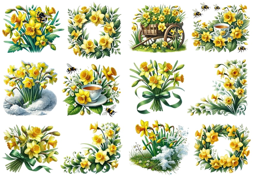 Papier ryżowy A4 do decoupage Artando - kwiaty wiosenne, narcyzy, żonkile