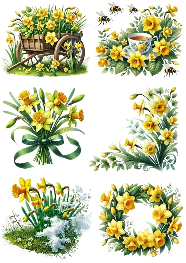 Papier ryżowy A4 do decoupage Artando - kwiaty wiosenne, narcyzy, żonkile