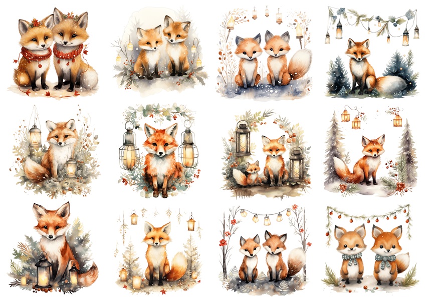 Papier ryżowy A4 do decoupage Artando - lisy, liski, lampiony, światełka, zima