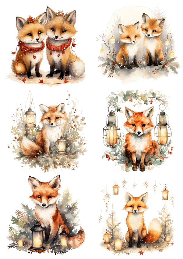Papier ryżowy A4 do decoupage Artando - lisy, liski, lampiony, światełka, zima