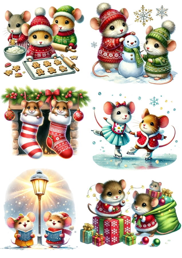 Papier ryżowy A4 do decoupage Artando - myszy, myszki, zima, święta