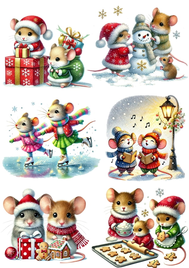Papier ryżowy A4 do decoupage Artando - myszy, myszki, zima, święta