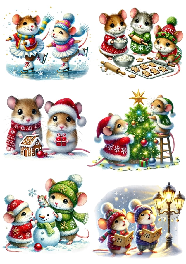 Papier ryżowy A4 do decoupage Artando - myszy, myszki, zima, święta