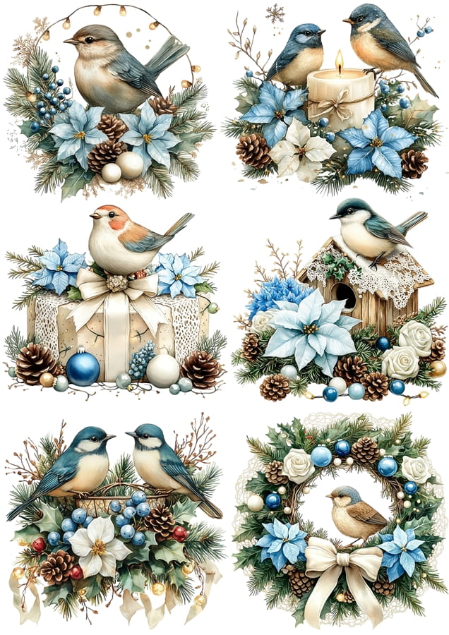 Papier ryżowy A4 do decoupage Artando - ptaki, ptaszki, stroiki, poinsecja