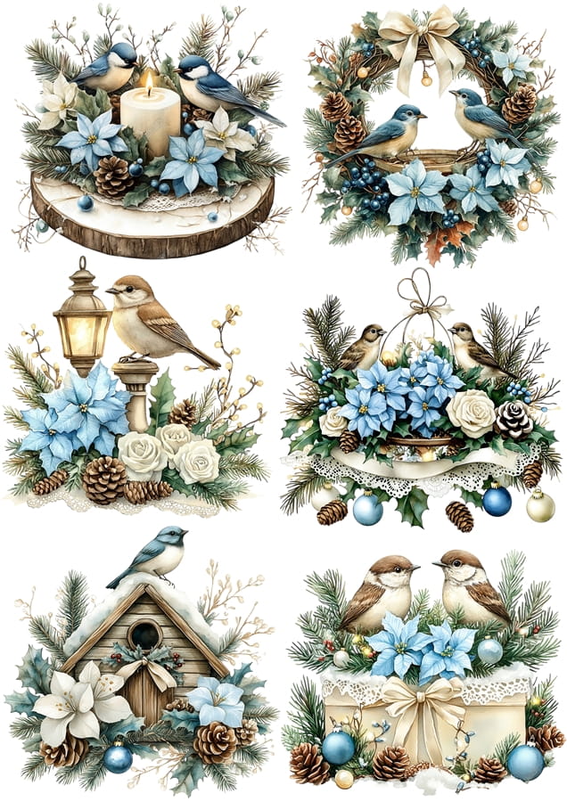 Papier ryżowy A4 do decoupage Artando - ptaki, ptaszki, stroiki, poinsecja