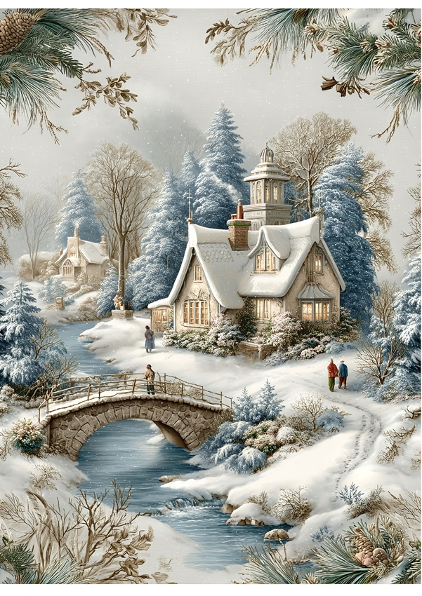 Papier ryżowy A4 do decoupage Artando -widok, pejzaż zimowy, domy, zima