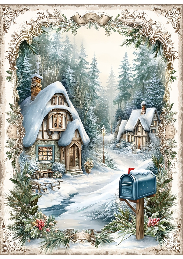 Papier ryżowy A4 do decoupage Artando -widok, pejzaż zimowy, domy, zima