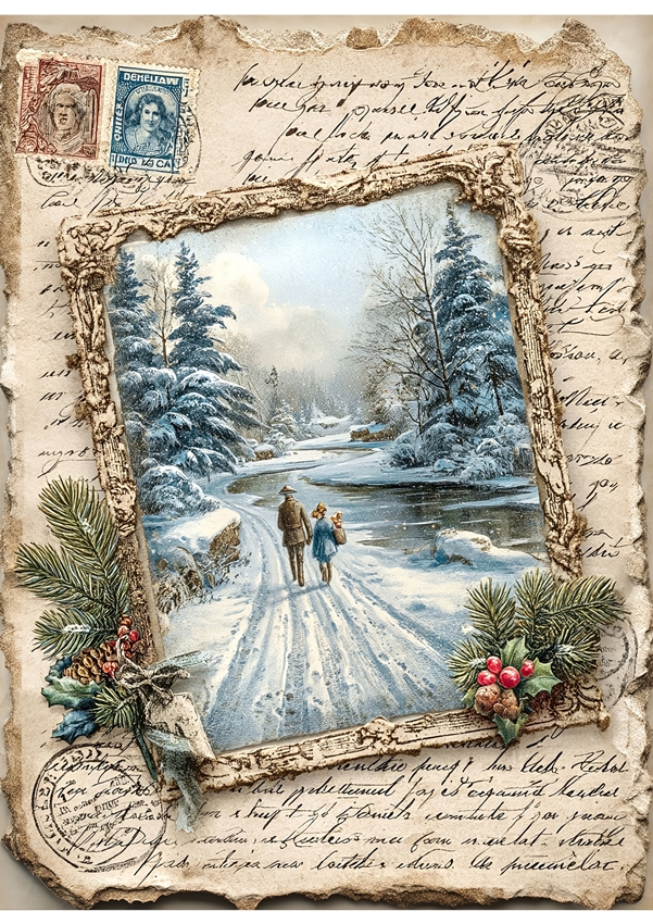 Papier ryżowy A4 do decoupage Artando - widok, pejzaż zimowy, domy, zima
