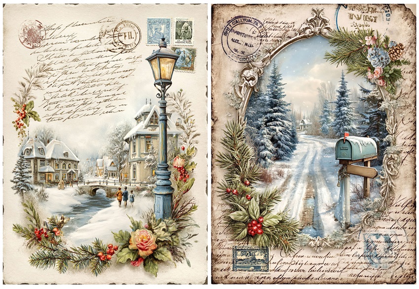 Papier ryżowy A4 do decoupage Artando -widok, pejzaż zimowy, domy, zima