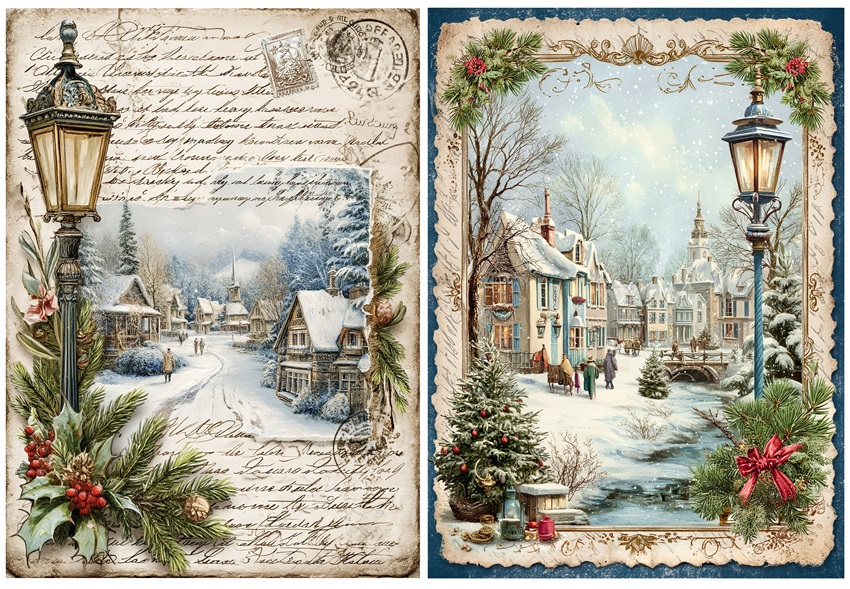 Papier ryżowy A4 do decoupage Artando -widok, pejzaż zimowy, domy, zima