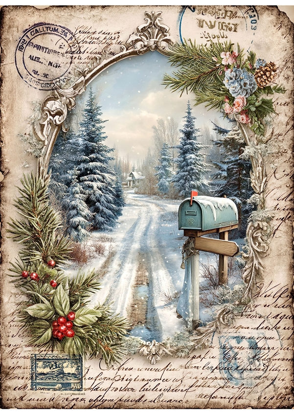 Papier ryżowy A4 do decoupage Artando -widok, pejzaż zimowy, domy, zima