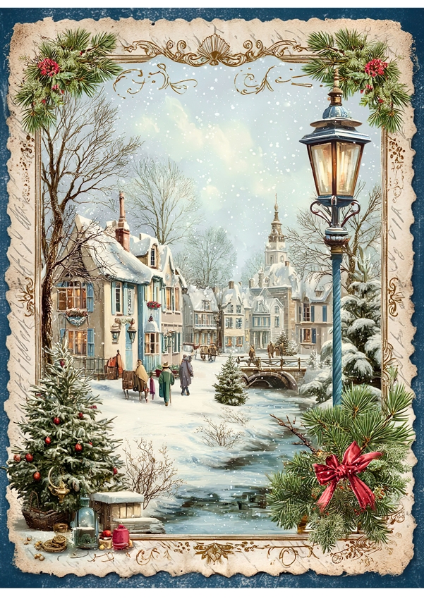 Papier ryżowy A4 do decoupage Artando -widok, pejzaż zimowy, domy, zima