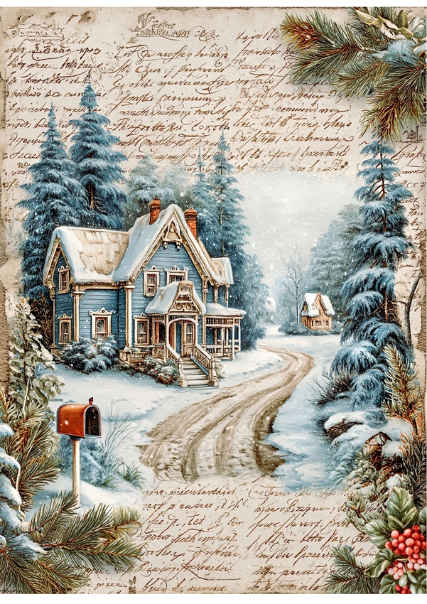 Papier ryżowy A4 do decoupage Artando -widok, pejzaż zimowy, domy, zima