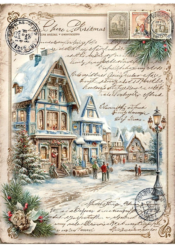 Papier ryżowy A4 do decoupage Artando -widok, pejzaż zimowy, domy, zima