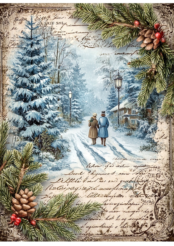 Papier ryżowy A4 do decoupage Artando -widok, pejzaż zimowy, domy, zima