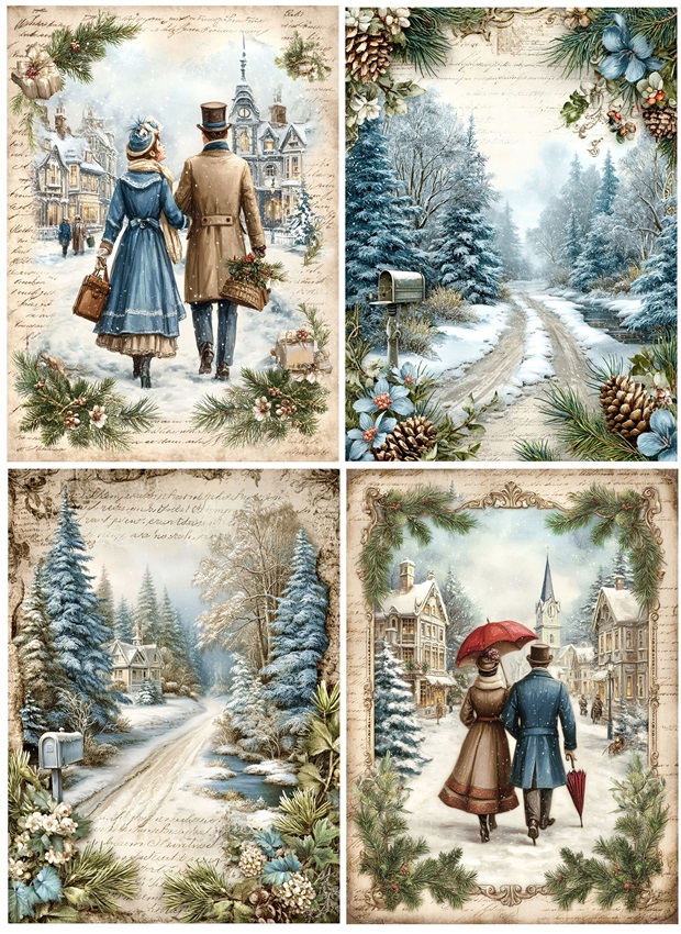 Papier ryżowy A4 do decoupage Artando -widok, pejzaż zimowy, domy, zima