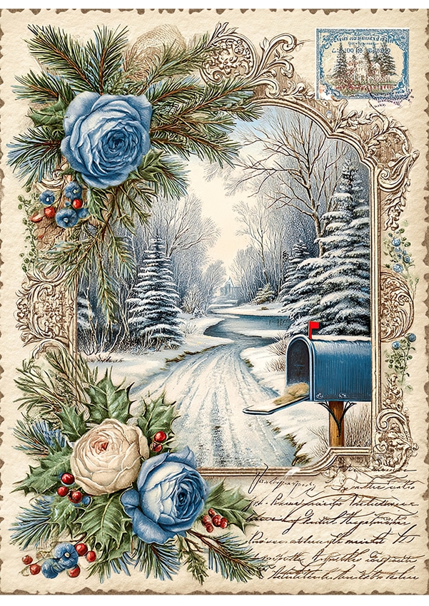 Papier ryżowy A4 do decoupage Artando - widok, pejzaż zimowy, domy, zima