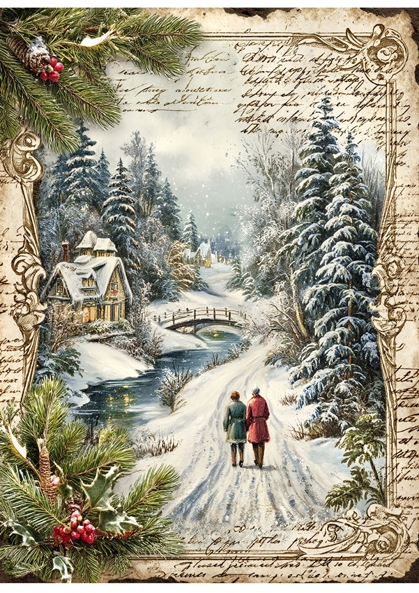 Papier ryżowy A4 do decoupage Artando - widok, pejzaż zimowy, domy, zima