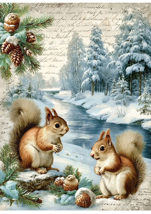 Papier ryżowy A4 do decoupage Artando - widok, pejzaż zimowy, domy, zima
