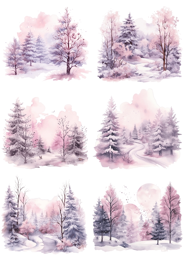 Papier ryżowy A4 do decoupage Artando - widok, pejzaż zimowy, las, drzewa