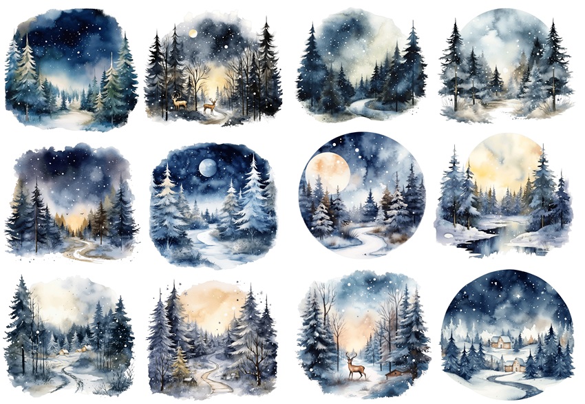 Papier ryżowy A4 do decoupage Artando - widok, pejzaż zimowy, las, drzewa