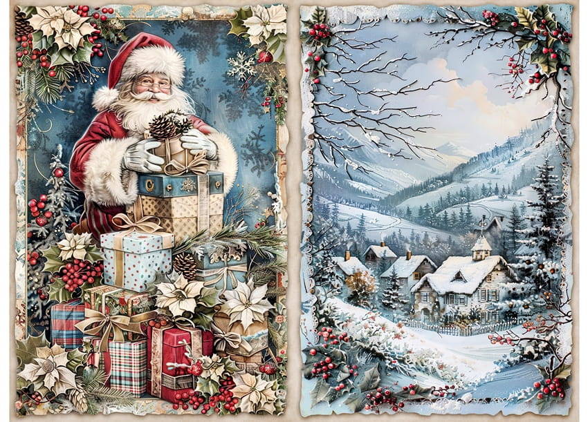 Papier ryżowy A4 do decoupage Artando - widok, pejzaż zimowy, miasteczko, Mikołaj
