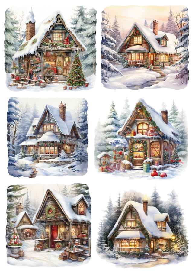 Papier ryżowy A4 do decoupage Artando - widok zimowy, domek, chatka, zima