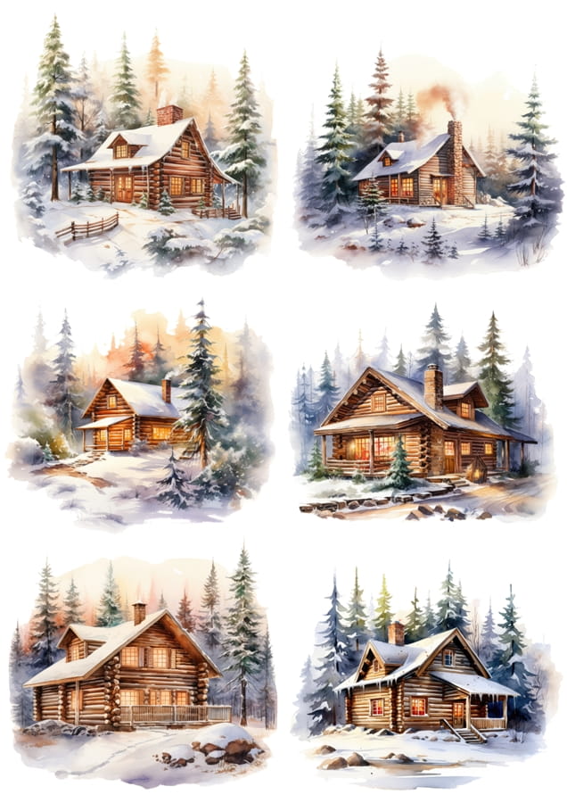 Papier ryżowy A4 do decoupage Artando - widok zimowy, domy, zima