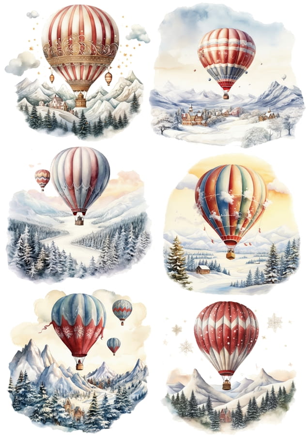 Papier ryżowy A4 do decoupage Artando - widok zimowy, pejzaż, balony, góry, zima