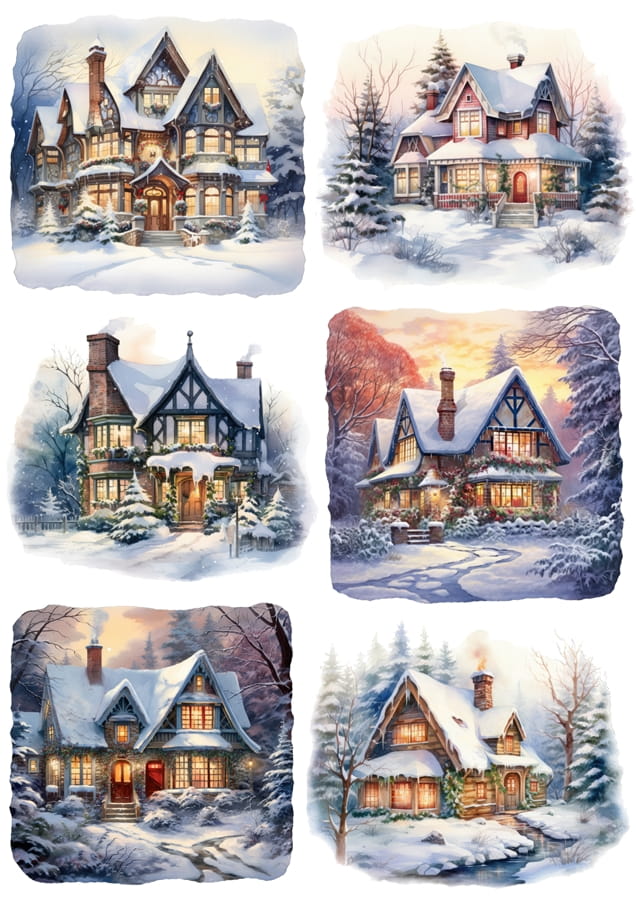 Papier ryżowy A4 do decoupage Artando - widok zimowy, pejzaż, zima, domy, domki